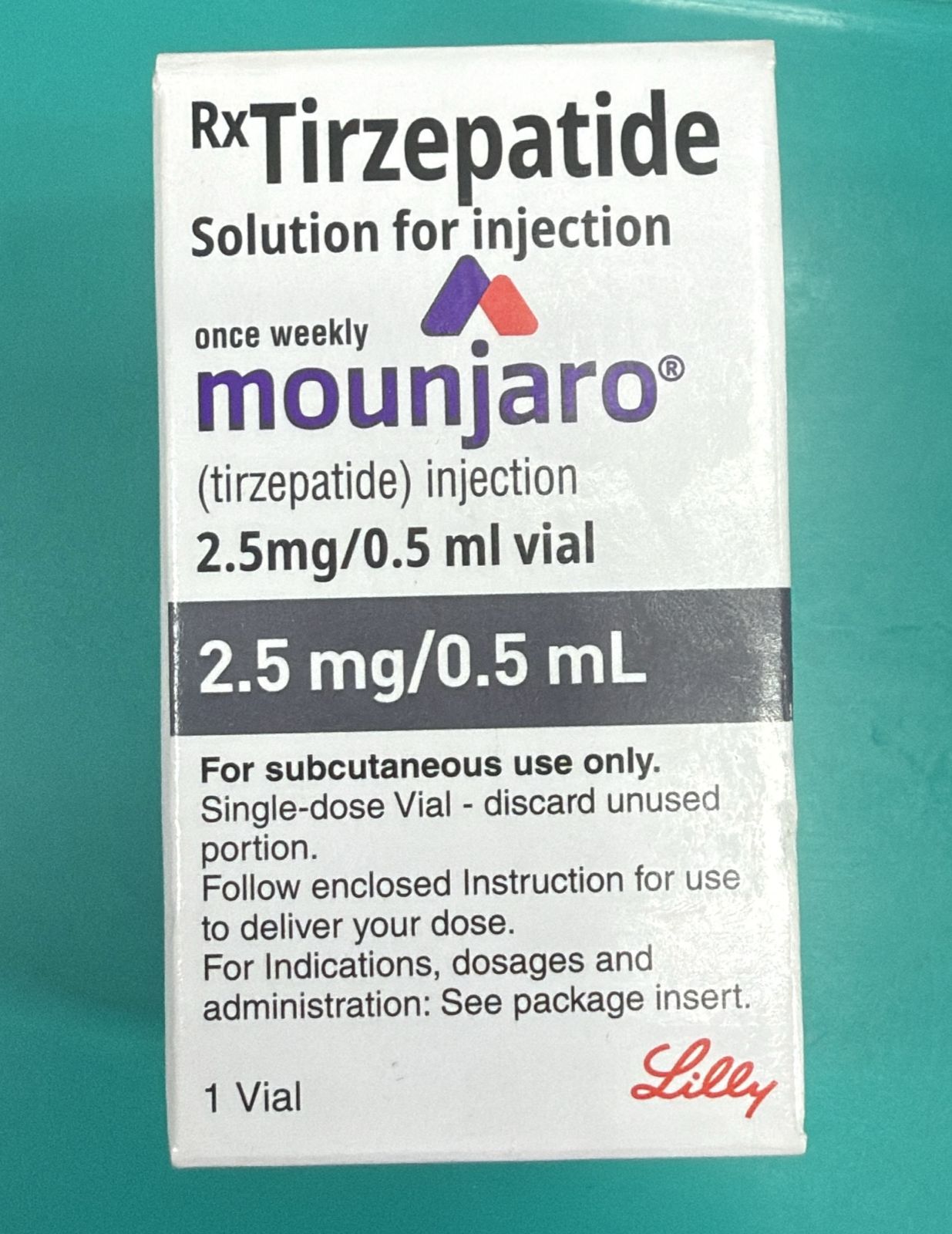 Mounjaro (tirzepatide) 2.5 mg, per 0.5 mL injection, is a prescription medicine for adults with type 2 diabetes used along with diet and exercise to improve blood sugar (glucose)